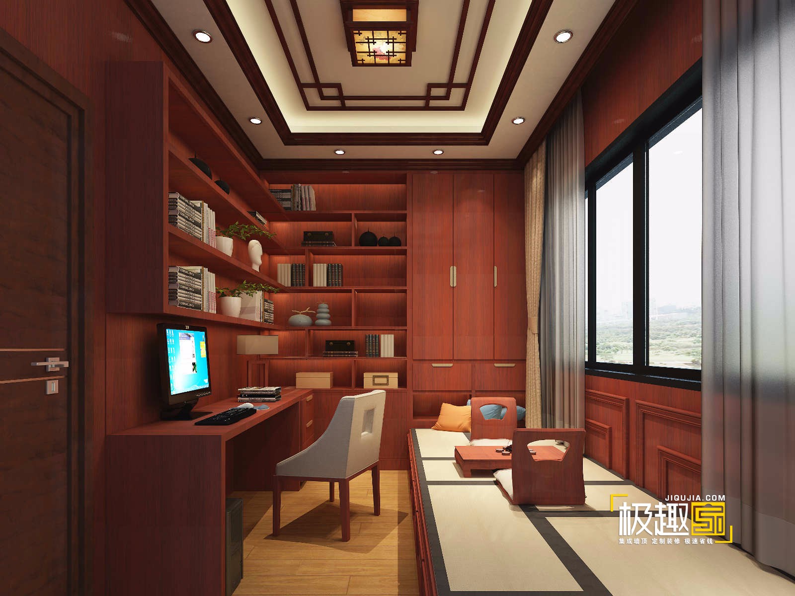 3、装饰造型:主要采用硬朗简洁的直线条,空间具有层次感。既使得中式家具古典、质朴的内涵显现,又符合现代人追求的时尚感、实用性。