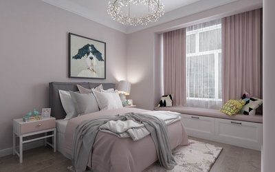 主卧给人十分清新宜人的感触,并没有特别豪华的装修,但是简略的空间充满了设计感,背景墙与床形成一个色系,床头背景与客厅趁热打铁,用装修画进行装点。软装色系一致,浅色彩的卧室出现了一种舒适的高档质感。
